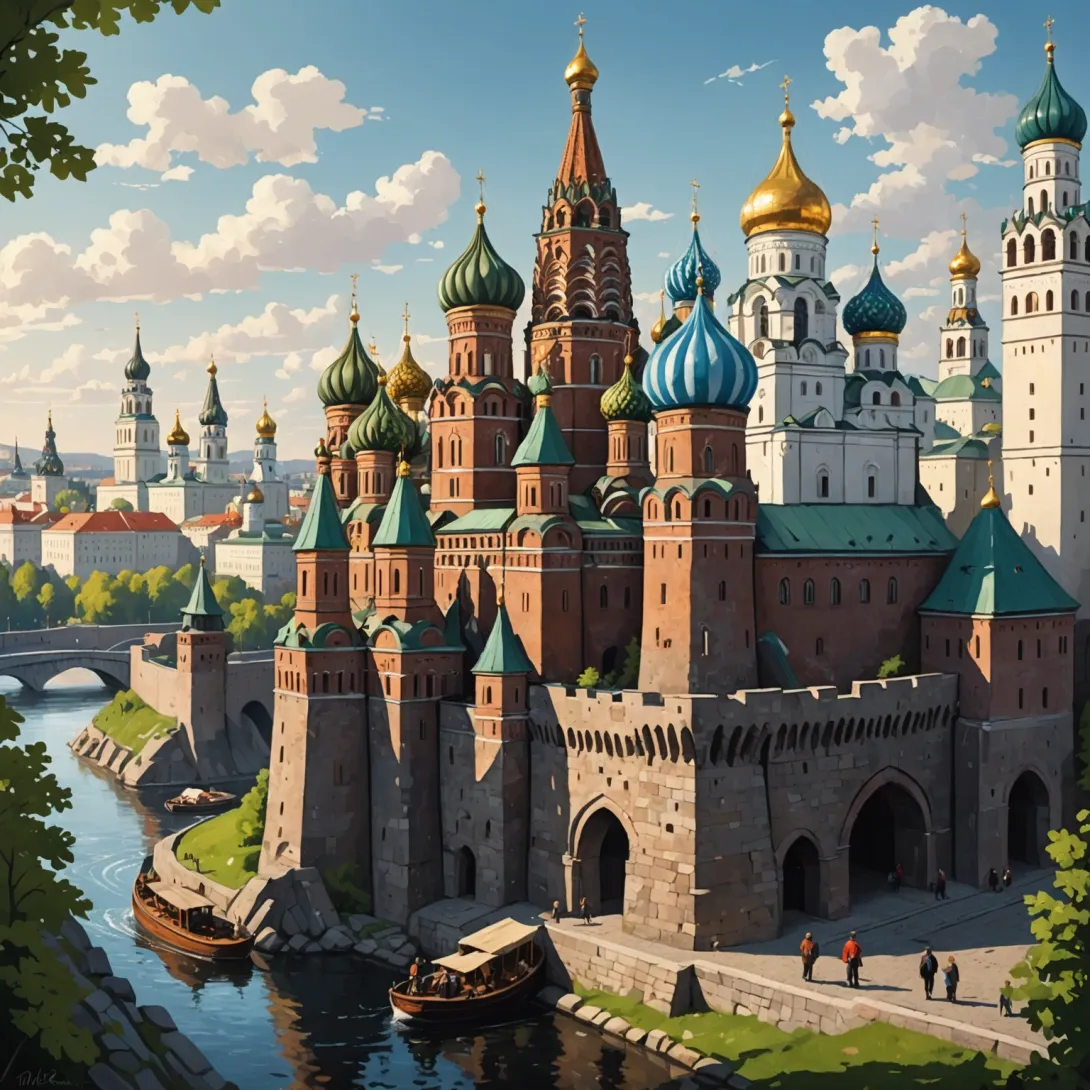 - Москва — столица с Кремлем, Красной площадью и Большим театром;